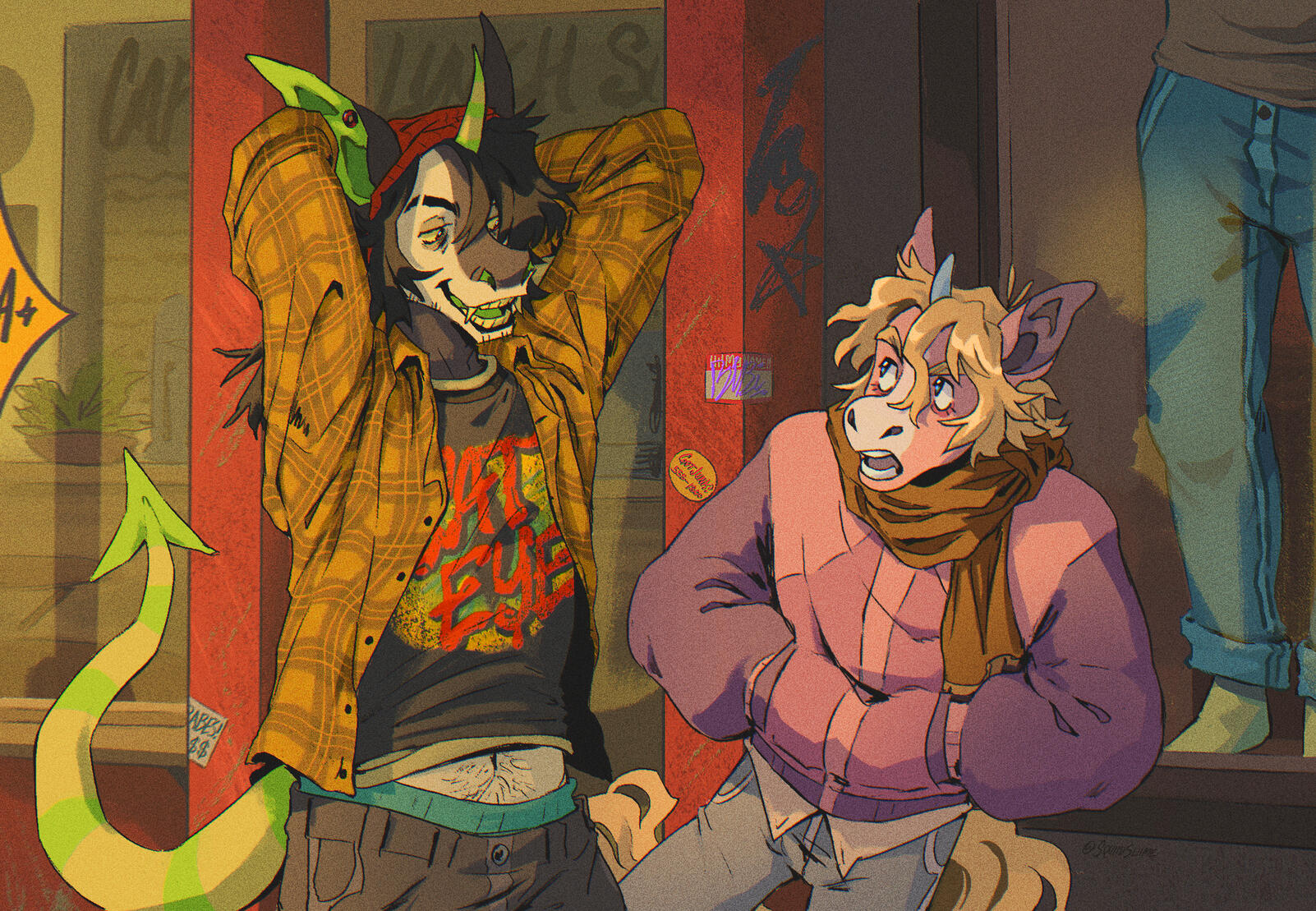 Inspired by late 90s - early 2000s cartoons, folk mythology, and queer culture, Scott McCormick strives to bring a grainy saturated uniqueness to every piece he creates. Growing up queer in the Bible Belt, it is his goal to create work that marginalized people can find comfort in no matter where they are. To see yourself in art is to feel real.